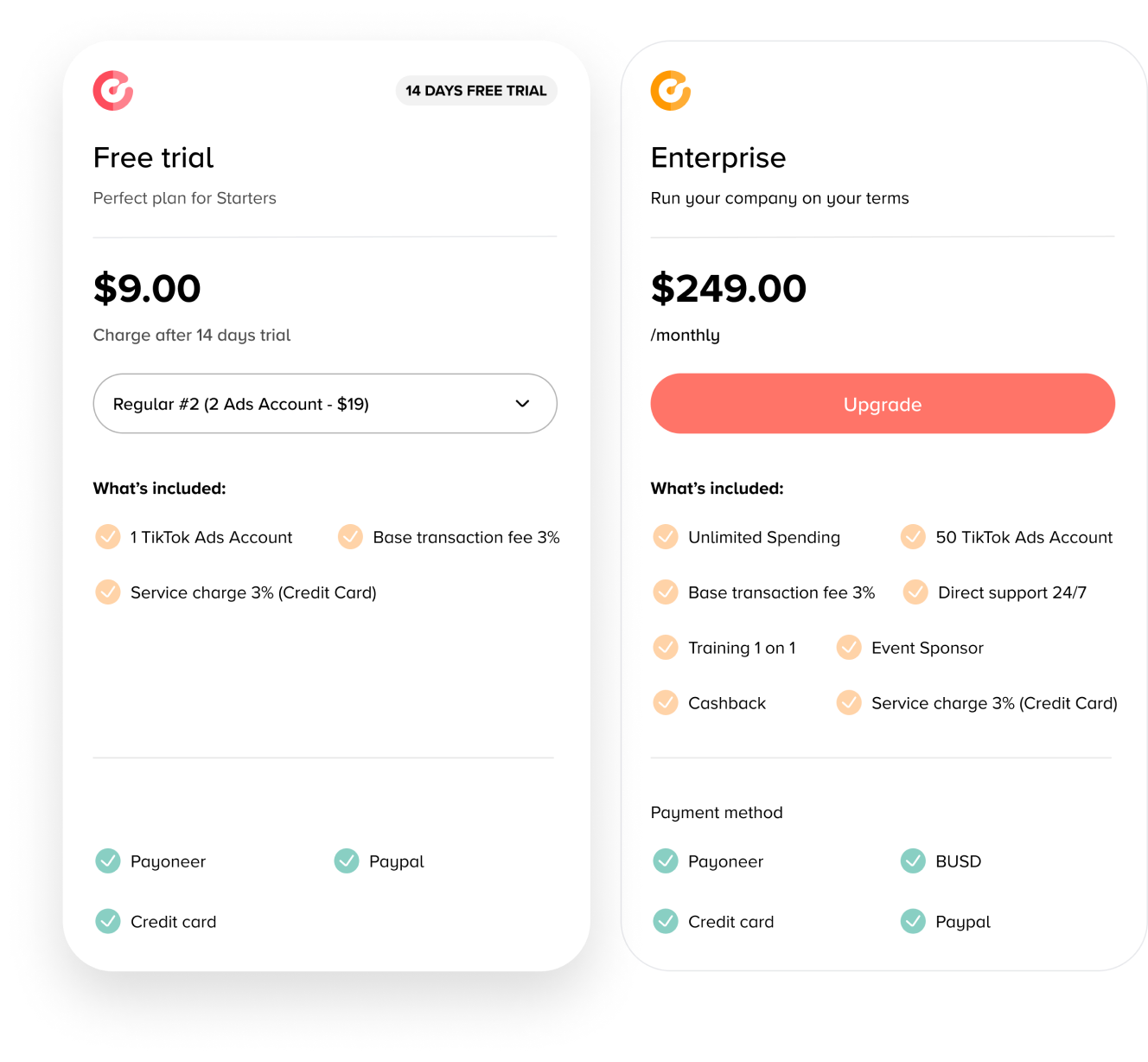 14 day trial to use our agency ad account. A new ad account will be created automatically on our platform and you will have 14 days for trial to enjoy our service